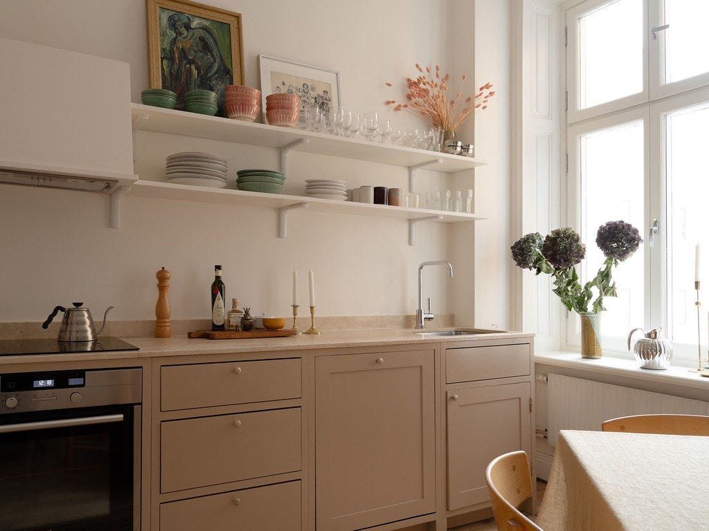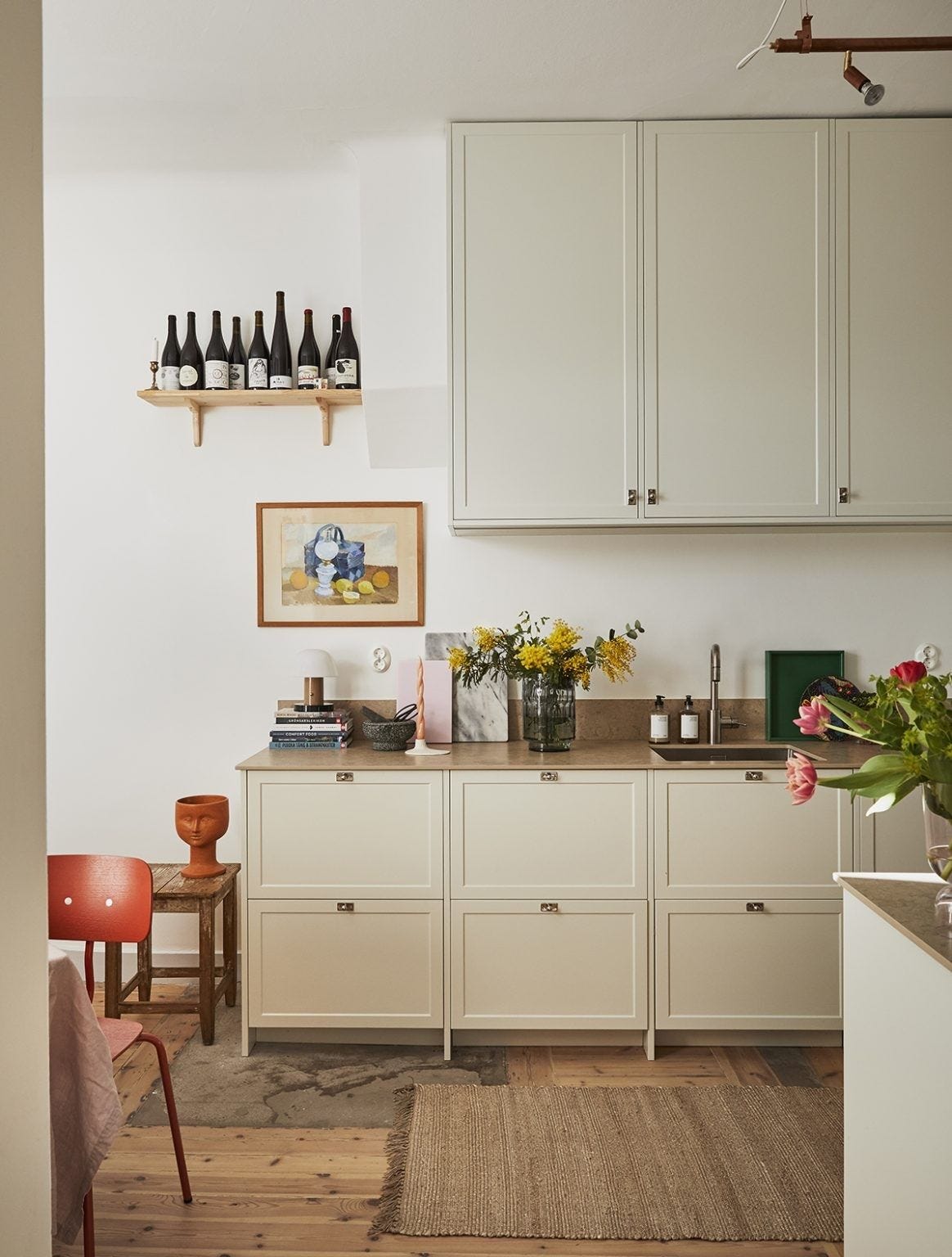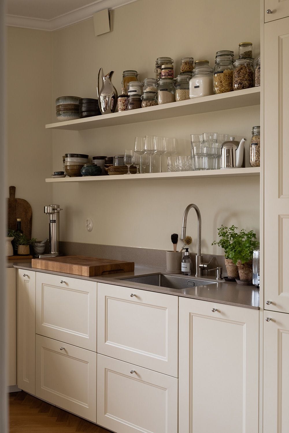Tom & I impromptu knocked out some old cabinetry in our very old kitchen forfeiting storage space for some head space. We have some ugly slate tiles that need to go next. We are in the process of renovating and these photos have elements that feel approachable to working with our current space: